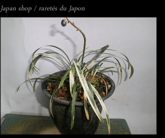 L'horticulture japonaise est très dynamique. Les japonais sont, notamment, fous de feuillages panachés, d'orchidées terrestres, de fleurs doubles ou bigarrées. J'ai toujours le souvenir de ces pépinières au Japon pleines de plantes de différentes couleurs. L'intérêt des japonais pour les plantes panachées demeure aujourd'hui fort mais n'approche pas ce qu'était il aux 18° et 19° siècles, quand la création de ces plantes semble avoir été presque une préoccupation nationale. Ces plantes, aussi bien que celles sélectionnées pour les fleurs voyantes ont été développées dans des pots et individuellement admirées plutôt qu'en tant qu'élément d'un paysage de jardin. On voit d'ailleurs beaucoup au Japon de plantes cultivées dans de petits pots en terre cuite. La plupart de ces plantes ne sont jamais sorties du Japon et les autres restent pour beaucoup uniquement cultivées dans de très rares collections. Il faut dire que certaines variétés peuvent dépasser les 100 euros le godet ! Depuis plusieurs années, nous développons notre collection et vous retrouverez dans cette rubrique, celles qui sont encore très rares et que nous proposons bien souvent qu'à l'unité. D'autres variétés, multipliées maintenant en plus grand nombre, sont intégrées à notre catalogue général.