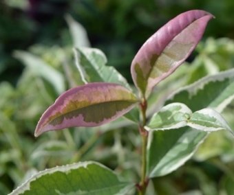 'Variegata' est une belle variété aux feuilles bordées de blanc. Plants d'environ 30 cm, ramifiés (à cause de la panachure on ne le plantera pas en plein soleil mais à 'l'ombre légère).