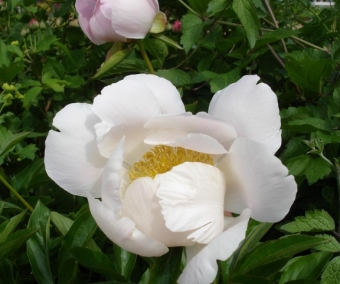 A l'origine de la plupart des cultivars de pivoines herbacées , Paeonia lactiflora ou pivoine de Chine est une plante vivace caduque, originaire d'Asie centrale et orientale (de l'Est du Tibet en passant par le Nord de la Chine jusqu'à l'Est de la Sibérie). Appréciant le soleil et un sol drainant mais pas trop pauvre, elle est extrêmement rustique.