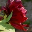Une superbe pivoine arbustive japonaise, aux fleurs couleur bordeaux, semi-doubles, parfois maculées de blanc sur les pétales externes.