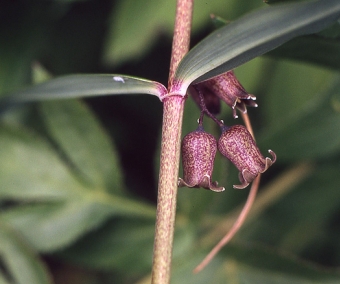 Polygonatum fuscum fait partie des plus hautes espèces. En effet, elle peut atteindre les 2 mètres de haut ! Ses longues tiges dressées portent des feuilles étroites en verticilles. Au printemps, nombreuses fleurs en clochettes pendantes roses, mouchetées, tout le long des rameaux. Notre pied-mère est issu d'une collecte dans le nord de la province du Sichuan en Chine.