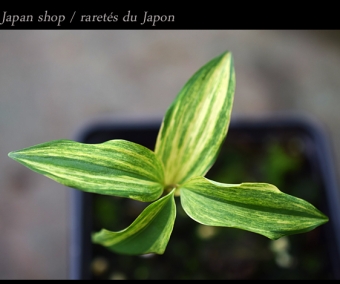 L'horticulture japonaise est très dynamique. Les japonais sont, notamment, fous de feuillages panachés, d'orchidées terrestres, de fleurs doubles ou bigarrées. J'ai toujours le souvenir de ces pépinières au Japon pleines de plantes de différentes couleurs. L'intérêt des japonais pour les plantes panachées demeure aujourd'hui fort mais n'approche pas ce qu'était il aux 18° et 19° siècles, quand la création de ces plantes semble avoir été presque une préoccupation nationale. Ces plantes, aussi bien que celles sélectionnées pour les fleurs voyantes ont été développées dans des pots et individuellement admirées plutôt qu'en tant qu'élément d'un paysage de jardin. On voit d'ailleurs beaucoup au Japon de plantes cultivées dans de petits pots en terre cuite. La plupart de ces plantes ne sont jamais sorties du Japon et les autres restent pour beaucoup uniquement cultivées dans de très rares collections. Il faut dire que certaines variétés peuvent dépasser les 100 euros le godet ! Depuis plusieurs années, nous développons notre collection et vous retrouverez dans cette rubrique, celles qui sont encore très rares et que nous proposons bien souvent qu'à l'unité. D'autres variétés, multipliées maintenant en plus grand nombre, sont intégrées à notre catalogue général.