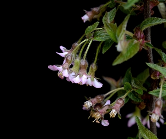 Petit prunier à fleurs dont les petites feuilles ovales et duveteuses prennent de très belles couleurs d'automne. Elles tombent tardivement en automne. Au printemps, il se couvre de petites fleurs roses. On le cultivera aussi pour sa superbe écorce acajou se désquamant. Ce petit arbre se cultivera au soleil ou à ombre légère dans toute bonne terre de jardin. Très bonne résistance au sec. Plants de 40/50 cm environ, quantité très limitée.