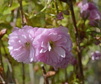 Joli prunier japonais se couvrant de fleurs roses et doubles au début du printemps. Un beau spectacle de début de saison. Le feuillage se colore vivement en automne. Son port, d'abord érigé, s'élargit ensuite. Il atteint 6/8 m de haut.