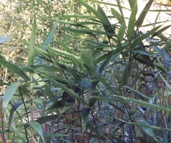 Bambou originaire de Chine et du Japon. Cette variété forme des touffes assez denses de 3 m envriron de haut. Les chaumes verts sont particulièrement ornementaux par le renflement en "boutelille" des entre-noeuds. Erigés à la base, ils s'arquent ensuite à la cime.
