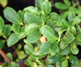 Voici une espèce originale au port compact. Ribes davidii est un arbrisseau de 30 à 80 cm de haut avec des petites feuilles arrondies et persistantes. Ses rameaux ne sont pas épineux. Inflorescences vert-jaunâtre au printemps suivies de fruits pourpres. Cette espèce rare en culture est endémique des montagnes de l'ouest de la Chine. Culture à mi-ombre ou au soleil non brûlant dans un sol pas trop sec. z7