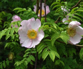 Un très beau rosier japonais dont les feuilles sont élégantes car composées de petites folioles vertes et finement dentées. En fin de printemps apparaissent ses grandes fleurs roses et simples. Le bouton floral est original car épineux. Non remontant, il n'en demeure pas moins décoratif en automne avec ses gros fruits arrondis et épineux. Port droit, il forme un grand arbuste érigé de 2/3 m de haut. Soleil, toute bonne terre de jardin. Quantité limitée, plants de 40 cm environ.