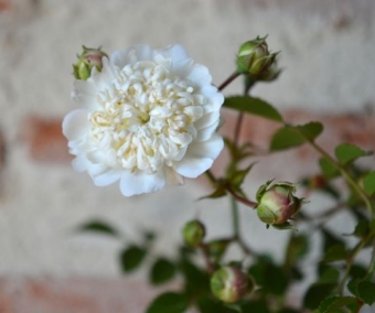 Plante de dimension moyenne, qui a tendance à drageonner, idéale sur un petit support genre treille, au soleil ou à mi-ombre.