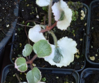 'Setsu Gekka'est une de nos introductions du Japon. Ses feuilles sont fortement et variablement marquées de blanc pur sur les marges. Leurs bords sont recourbés vers le haut. Une variété très lumineuse, à croissance beaucoup plus lente que le type car peu de chlorohylle, mais réellement digne d'intérêt.