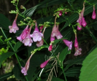 Grande et vigoureuse plante vivace aux tiges dressées et robustes dépassant largement 1.5 mètre de haut. Celle-ci peuvent se lignifier à la base, donnant un arbrisseau. La plante porte de nombreuses fleurs tubulaires rose-magenta en automne et même en hiver dans les régions douces. Elle refleurit parfois au printemps. Originaire des régions chaudes de Chine, on la réservera pour les régions douces ou, ailleurs, à la culture en pot. Culture en situation ombragée en bonne terre pas trop sèche.