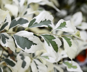 'Variegata' est une superbe plante très lumineuse avec ses feuilles vertes et blanc pur. Culture à l'ombre indispensable. Plants fournis de 50/60 cm environ, quantité très limitée.