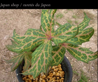 L'horticulture japonaise est très dynamique. Les japonais sont, notamment, fous de feuillages panachés, d'orchidées terretres, de fleurs doubles ou bigarrées. J'ai toujours le souvenir de ces pépinières au Japon pleines de plantes de différentes couleurs. L'intérêt des japonais pour les plantes panachées demeure aujourd'hui fort mais n'approche pas ce qu'était il aux 18° et 19° siècles, quand la création de ces plantes semble avoir été presque une préoccupation nationale. Ces plantes, aussi bien que celles sélectionnées pour les fleurs voyantes ont été développées dans des pots et individuellement admirées plutôt qu'en tant qu'élément d'un paysage de jardin. On voit d'ailleurs beaucoup au Japon de plantes cultivées dans de petits pots en terre cuite. La plupart de ces plantes ne sont jamais sorties du Japon et les autres restent pour beaucoup uniquement cultivées dans de très rares collections. Il faut dire que certaines variétés peuvent dépasser les 100 euros le godet ! Depuis plusieurs années, nous développons notre collection et vous retrouverez dans cette rubrique, celles qui sont encore très rares et que nous proposons bien souvent qu'à l'unité. D'autres variétés, multipliées maintenant en plus grand nombre, sont intégrées à notre catalogue général.