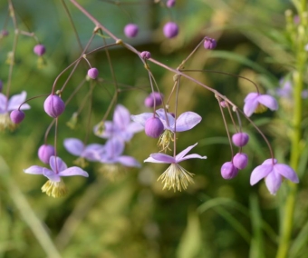 Thalictrum rochebrunianum est proche de l'espèce delavayii cependant ses sépales sont plus arrondis. C'est une superbe vivace de 1,5 à 2.5 m de haut environ portant en été des épis dressés et lâches de fleurs mauve pâle. Aspect très léger et gracieux, aussi bien du feuillage finement découpés en lobes, que de la floraison aérienne.