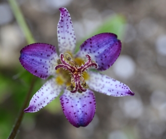 Une autre très belle variété japonaise aux fleurs vivement colorées de violet foncé, rose et blanc. Culture comme les autres tricyrtis.