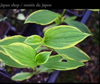 L'horticulture japonaise est très dynamique. Les japonais sont, notamment, fous de feuillages panachés, d'orchidées terrestres, de fleurs doubles ou bigarrées. J'ai toujours le souvenir de ces pépinières au Japon pleines de plantes de différentes couleurs. L'intérêt des japonais pour les plantes panachées demeure aujourd'hui fort mais n'approche pas ce qu'était il aux 18° et 19° siècles, quand la création de ces plantes semble avoir été presque une préoccupation nationale. Ces plantes, aussi bien que celles sélectionnées pour les fleurs voyantes ont été développées dans des pots et individuellement admirées plutôt qu'en tant qu'élément d'un paysage de jardin. On voit d'ailleurs beaucoup au Japon de plantes cultivées dans de petits pots en terre cuite. La plupart de ces plantes ne sont jamais sorties du Japon et les autres restent pour beaucoup uniquement cultivées dans de très rares collections. Il faut dire que certaines variétés peuvent dépasser les 100 euros le godet ! Depuis plusieurs années, nous développons notre collection et vous retrouverez dans cette rubrique, celles qui sont encore très rares et que nous proposons bien souvent qu'à l'unité. D'autres variétés, multipliées maintenant en plus grand nombre, sont intégrées à notre catalogue général.