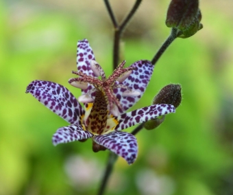 De la famille des Liliacées, leur nom commun est 'Lys crapaud' ('Toad Lily' en anglais). Mais bien souvent quand on découvre leur floraison c'est plutôt aux orchidées qu'on pense spontanément (bien que la structure florale n'ai strictement rien à voir, mais la chatoyance des couleurs et les fréquentes mouchetures y font songer...) Elles sont faciles à cultiver pour la plupart à condition d'avoir le terrain adapté : neutre ou acide, et frais mais bien drainé (leurs rhizomes gorgés d'eau ne supportent pas les sols asphyxiants qui les fait à coup sûr pourrir en période de repos). Ce sont également des plantes relativement gourmandes qui préfèrent les terrains riches. L'exposition idéale est l'ombre claire, bien que certains tolèrent le plein soleil si le terrain n'est pas trop sec. La culture en pot dans du terreau de tourbe grossier leur convient également bien à défaut de pouvoir les mettre au jardin. Il faudra par contre opter pour un hivernage en serre froide dans les régions où il gèle fort. En pleine terre par contre ils sont parfaitement rustiques (le feuillage est caduc et la plante sèche en fin d'automne pour réapparaître au printemps).
