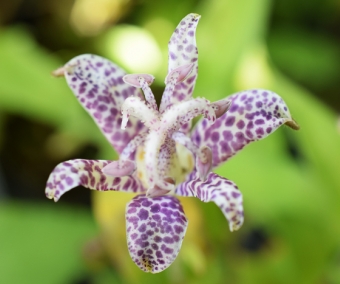 Ce genre est affublé du nom peu enviable de lis des crapauds. Les Tricyrtis ont quelque chose de fascinant dans la complexité des fleurs et leurs coloris variés et vifs. Beaucoup y voient des fleurs d'orchidées. J'ai essuyé plusieurs échecs au début avec ces plantes. Mais finalement, en les plantant selon leurs besoins, elles prospèrent bien et fleurissent abondamment. Ce sont des plantes caduques qui forment, avec les années, de belles touffes bien denses. Malgré la hauteur de certaines variétés, elles nécessitent que rarement un tuteurage. Leurs floraisons s'échelonnent de l'été jusqu'aux gelées d'automne et certaines plantes restent en fleurs durant plusieurs semaines. Les Tricyrtis apprécient les sols pas trop secs, fertiles et bien drainés en situation ombragée. Ces plantes, très graphiques, se marient bien avec des graminées aux feuillages colorés. Les hautes et larges espèces seront à associer à d'autres grandes vivaces afin de créer des massifs avec du volume. Je les trouve très beaux sur le devant des massifs. Les plantes plus modestes trouveront leur place au milieu de fougères, hostas, astilbes, heuchères, Syneilesis, Cacalia, Disporum ou encore Polygonatum. On sera vigilant au printemps quand les jeunes pousses sortent du sol car elles peuvent attirer les limaces.