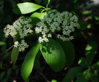 Viburnum sieboldii est une viorne que j'aime beaucoup. C'est un grand arbuste, qui a de grandes feuilles caduques prenant de belles teintes à l'automne. Un plant âgé peut atteindre 5 m de haut et presque autant de large. Il faudra donc lui laisser une bonne place, en isolé ou en haie vive. En avril-juin, ses petites fleurs blanches apparaissent en larges inflorescences qui dégagent un parfum de citron. Elles sont suivies de fruits rose-rouge puis noirs. A planter au soleil, en tout sol de jardin frais et bien drainé. Culture facile, croissance rapide, devient rapidement un grand arbuste. Très rustique, z5. Plants de 40 cm environ, quantité limitée.